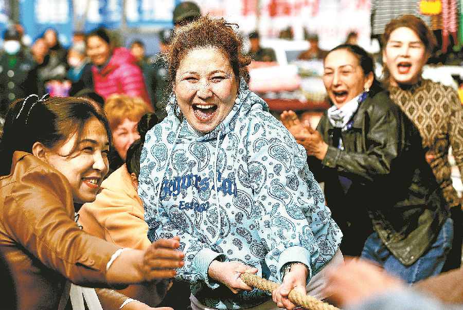 4月11日,激烈的拔河比赛正在进行中。 当日,乌鲁木齐市天山区二道桥街道联合辖区商城开展拔河比赛,倡导全民健身。在全民健身热潮的推动下,体育锻炼已成为居民健康生活中非常喜爱的一项活动。 石榴云/新疆日报记者 李瑞 摄