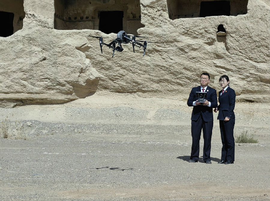 2021年,自治区检察院第八检察部办案团队多次前往库木吐喇石窟,应用无人机倾斜摄影测量技术和3D建模进行现场勘查,发现依山而建的石窟由于频遭水害,多处地基塌陷。