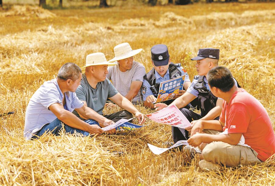 7月23日,民警在田间地头向农户讲解防范电信网络诈骗知识。