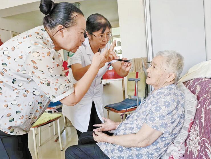 当天,该院家庭医生携带便携医疗仪器设备入户义诊,为辖区行动不便的老人测量血糖、血压等体检服务。