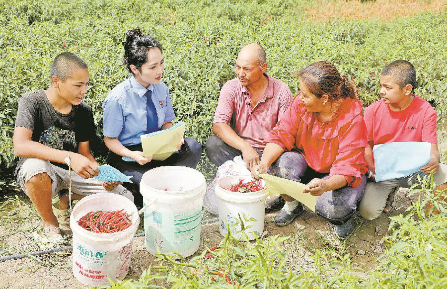 8月27日,英吉沙县人民检察院检察官米叶赛尔来到该县艾古斯乡辣椒地,为群众讲解反诈知识。