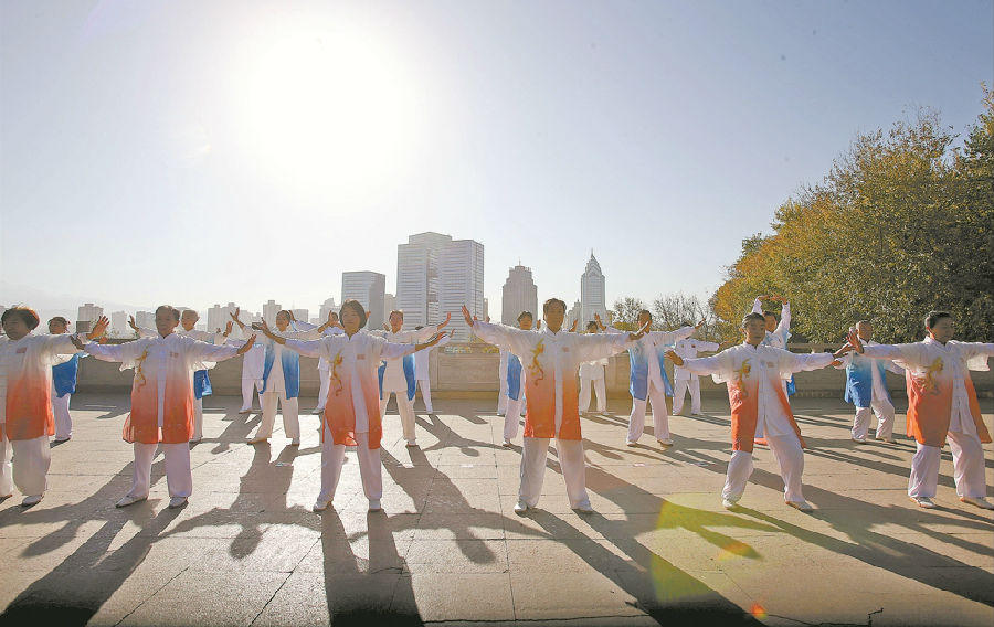 A+ | a10月10日,乌鲁木齐市水磨沟区在红山公园举办“共享健康·共享太极”千人太极文化节活动,1500余名太极拳和八段锦爱好者进行比赛和展演。乌市水磨沟区文化体育和旅游局(文物局)局长李文武表示,举办此次活动是为了深入弘扬中华优秀传统文化,进一步丰富和活跃各族群众的体育文化生活。石榴云/新疆日报记者 李雄心 摄
