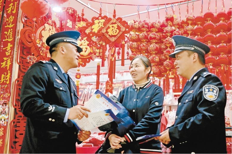 连日来,乌鲁木齐市公安局各分局派出所民辅警来到辖区居民小区、沿街商铺和超市等场所,开展防范电信网络诈骗宣传活动,提醒群众守好“钱袋子”。图为1月20日,乌市公安局高新区(新市区)分局钻石城派出所民警向市民普及反诈知识。