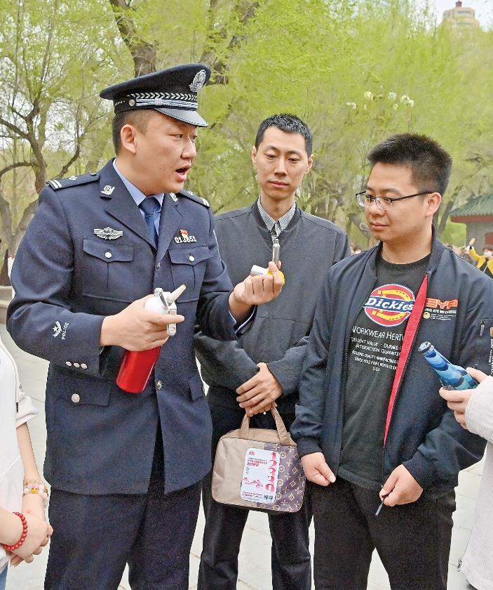4月,王伟向群众介绍新型毒品“笑气”的危害。石榴云/新疆法治报记者 龚彦晨 摄