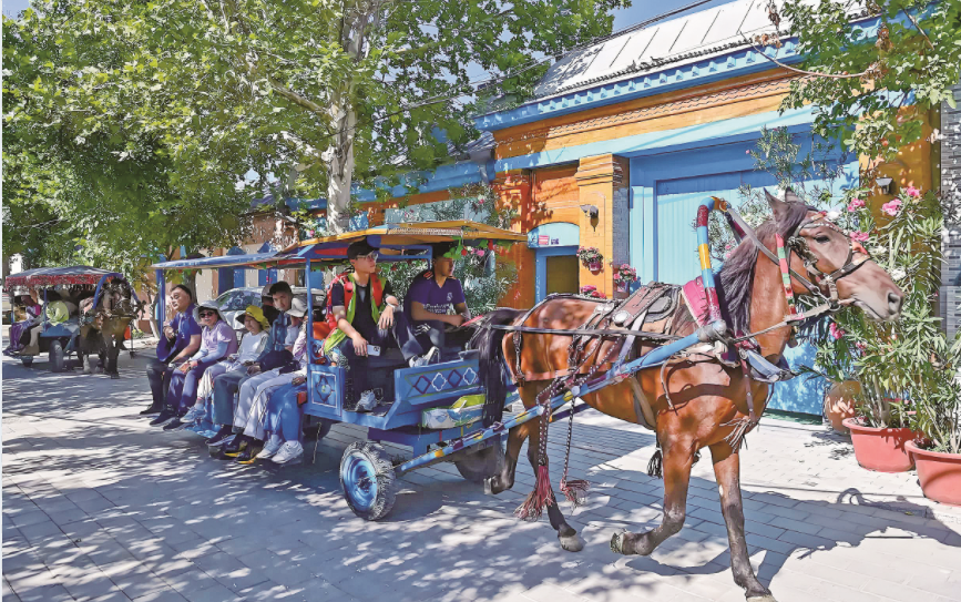 新华社乌鲁木齐7月29日电(记者 关俏俏)一街一巷一画卷,一步一景引游人。盛夏时节,位于伊犁哈萨克自治州伊宁市的伊犁老城喀赞其文化旅游区,马车穿梭、游人如织。从道路硬化到民居修缮,从污水治理到景观打造,曾经 “晴天一身土,雨天一身泥” 的老城区升级改造成为旅游胜地,吸引各地游客纷至沓来。