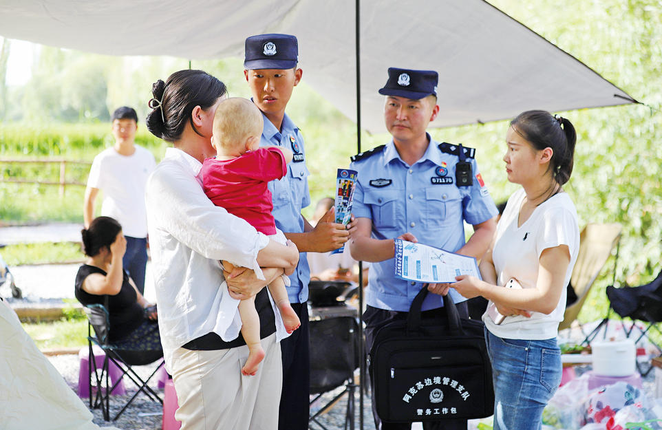 A+ | a随着气温升高,阿克苏地区户外露营活动持续火热。8月3日,新疆出入境边防检查总站阿克苏边境管理支队吐木秀克边境派出所组织民辅警走访辖区各露营基地。