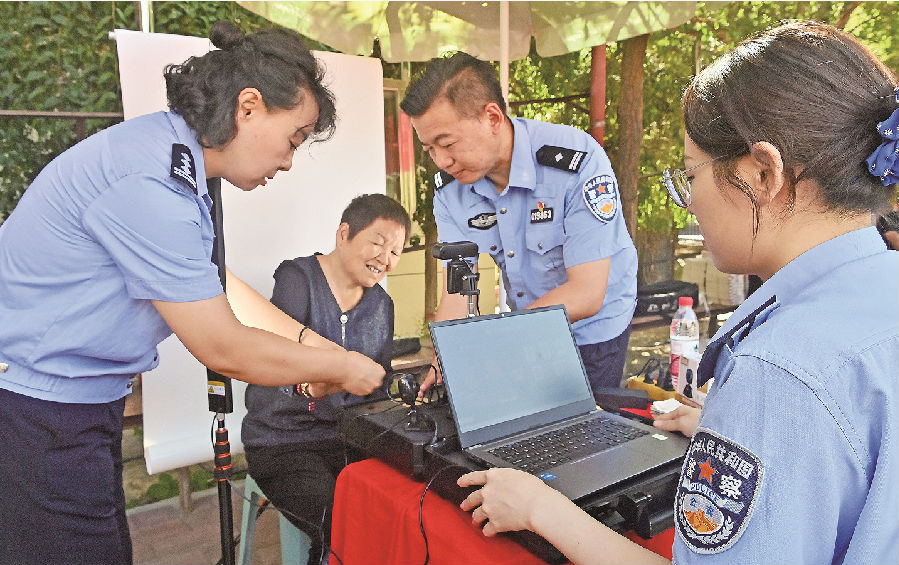 8月14日,民警指导居民采集信息。