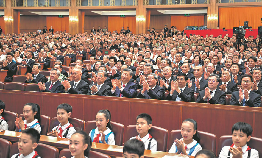 9月3日,纪念中国人民抗日战争暨世界反法西斯战争胜利80周年文艺晚会《正义必胜》在北京人民大会堂隆重举行。习近平、李强、赵乐际、王沪宁、蔡奇、丁薛祥、李希、韩正等党和国家领导人,与约6000名中外人士一起观看晚会。 新华社记者 李响 摄