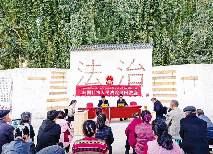 10月28日,阿图什市人民法院巡回法庭在上阿图什镇塔库提村开庭。 石榴云/新疆法治报记者 张蕾 摄