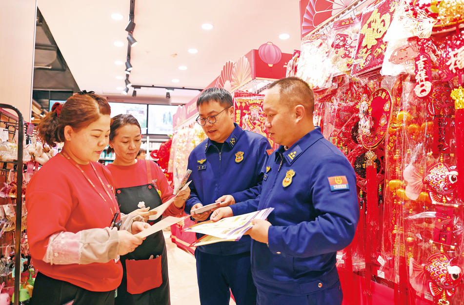 A+ | a2月5日,乌鲁木齐市消防救援支队头屯河区消防救援大队消防监督员走进辖区商超,开展消防安全专项检查,宣讲消防安全知识。图为消防监督员为商超工作人员讲解货物存放注意事项。