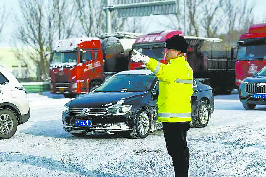 1月26日,民警在检查站引导过往车辆有序通过。 受访单位供图