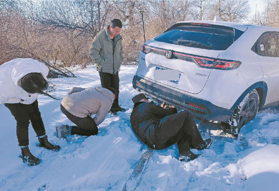 2月4日17时30分,那拉提景区派出所民警接到游客求助,称其车辆在那拉提景区胡杨林陷入雪坑无法前行,请求帮助。民警迅速携带救援工具赶到现场,先用铁锹铲雪、垫木板等方法帮助车辆脱困,但因积雪过深,效果不佳。于是,民警找来皮卡车拖拽被困车辆,经过多次尝试,最终成功将被困车辆拖至安全地段。