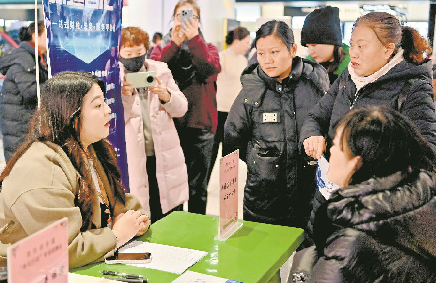 2月19日,乌鲁木齐市水磨沟区人力资源和社会保障局联合新民路街道在七一阳光生活广场举办2025年春风行动专场招聘会,47家企业为求职者提供112个就业岗位。2月至3月,乌市将举办86场线下招聘会,相关就业岗位能够满足不同求职者的需求。图为当日,求职者向企业工作人员咨询岗位要求。 石榴云/新疆法治报记者 单坤 摄