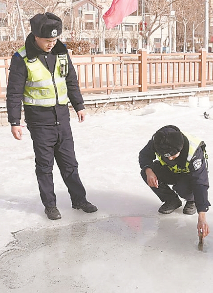 对于冰面安全隐患的排查,民警同样细致入微。“这个警示标牌有些模糊了,得更换。”2月21日,民警在东湖周边发现问题,当即记录下来。库车市公安局民警通过日常巡逻和定期检查,全面检索水域周边的安全防护设施、警示标牌标语,发现问题立即整改,不放过一处。
