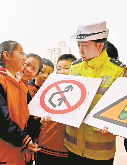 3月27日,乌鲁木齐市公安局交警支队水磨沟区大队民警向学生们讲解交通标志、标线的作用。当日,该大队在乌市第75小学开展交通安全宣传活动,深入浅出地向学生们讲解日常出行时需要注意的交通安全事项,引导学生们自觉遵守道路交通安全法规,文明出行。 石榴云/新疆法治报记者 单坤 摄