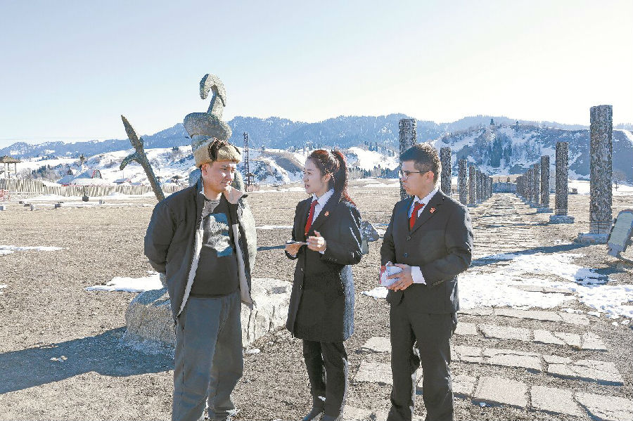 3月25日,新源县人民法院法官到那拉提旅游风景区开展普法宣传活动,通过设置宣传展板、发放《中华人民共和国民法典》宣传手册、解答游客法律问题等形式,将司法服务送到游客身边,为生态旅游注入法治力量。 常阿慧 摄
