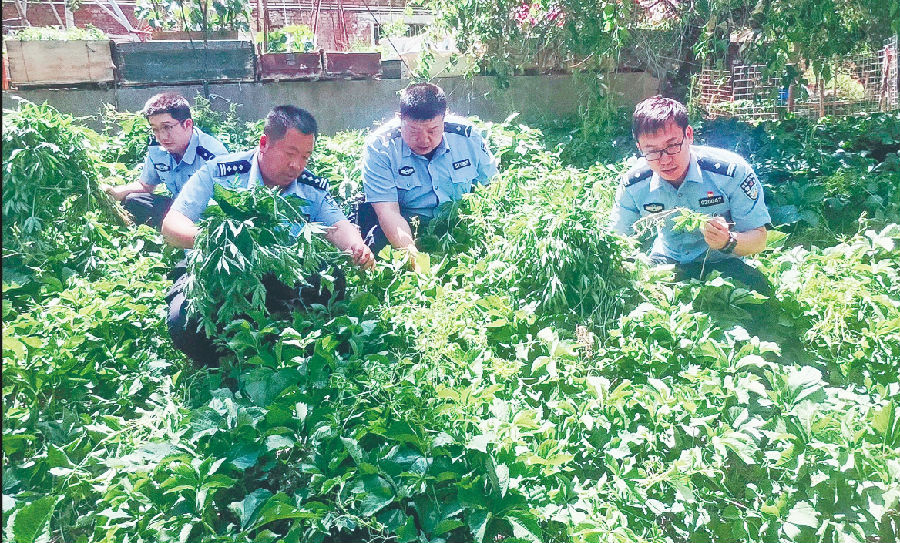 5月26日,乌鲁木齐市公安局沙依巴克区分局雅玛里克山派出所民辅警在辖区巡逻时发现疑似野生大麻的植物。民辅警上报情况后,沙区公安分局禁毒大队民警赶赴现场,确认该植物为野生大麻,当即全部拔除。随后,民辅警走访排查周边区域,确保无遗漏植株,并向群众宣传禁毒知识。