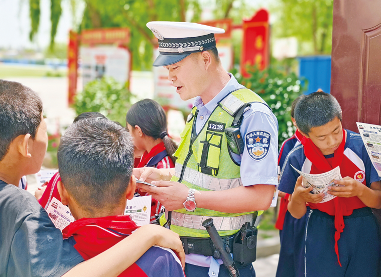 “骑行要戴头盔”“过马路不能想着‘车会让人’”……学生们踊跃作答,这是他们今年第4次参加交通安全宣传活动。“现在,孩子们已经能熟记并运用交通知识,这说明我们开展的宣传活动起作用了。”博湖县公安局交警大队大队长陈文浩说。