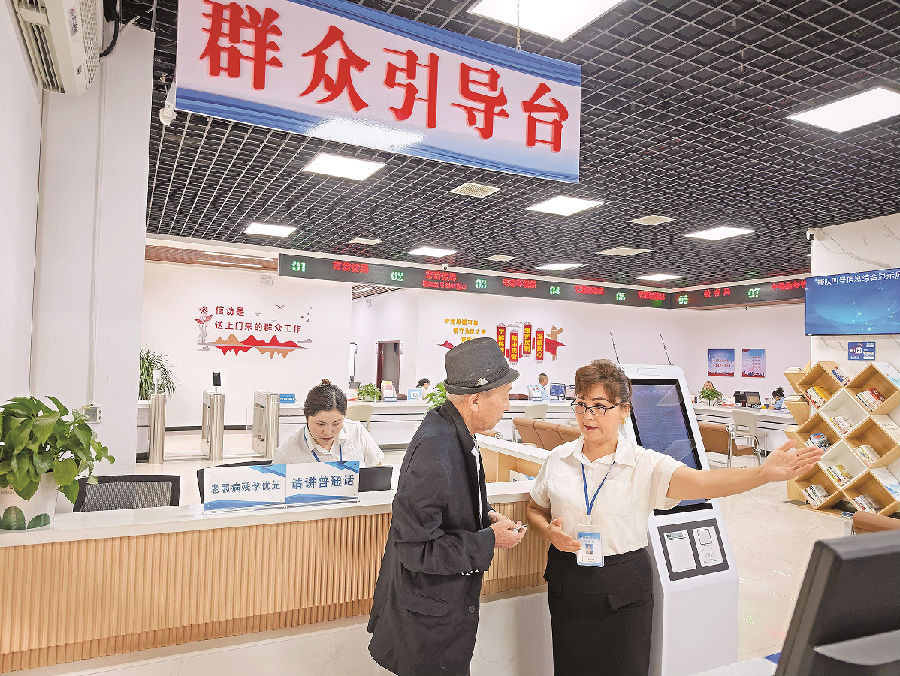 九月十六日,喀什市综治中心工作人员引导群众办理业务。