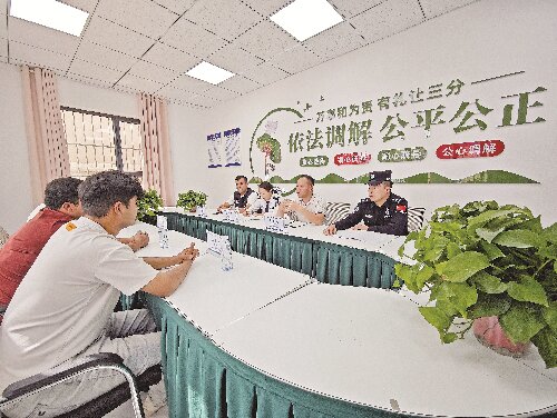 9月20日,乌恰县吐尔尕特口岸涉外法律服务中心工作人员联合解纷。 石榴云/新疆法治报记者 赵书城 摄