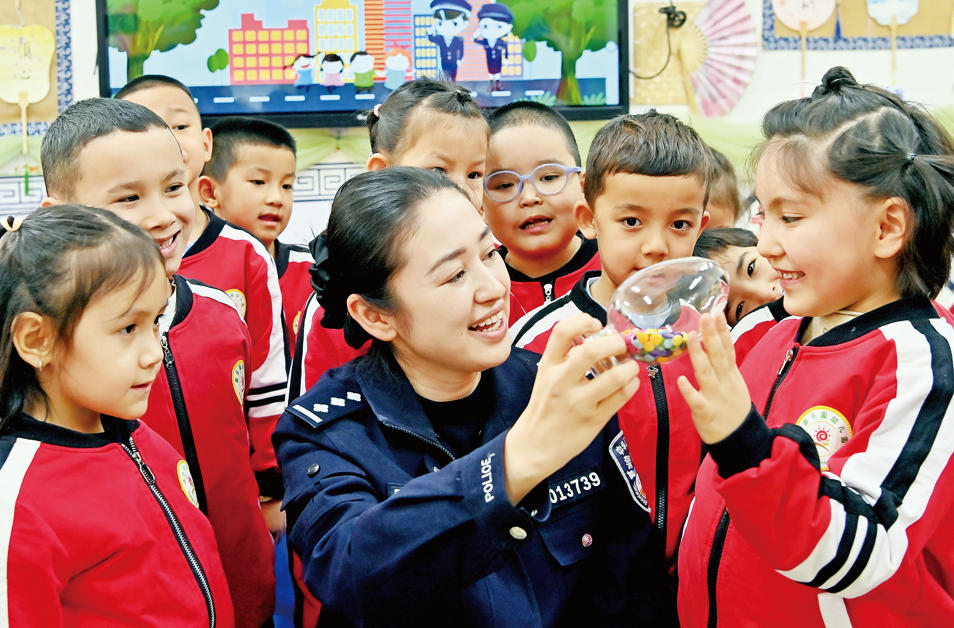 当日,乌鲁木齐市公安局天山区分局南湾街街道派出所民警到昌乐园幼儿园开展禁毒宣传教育活动。民警将禁毒知识融入儿童生活场景,激发孩子们参与活动的积极性,引导孩子们在沉浸式体验中掌握自我保护技能。