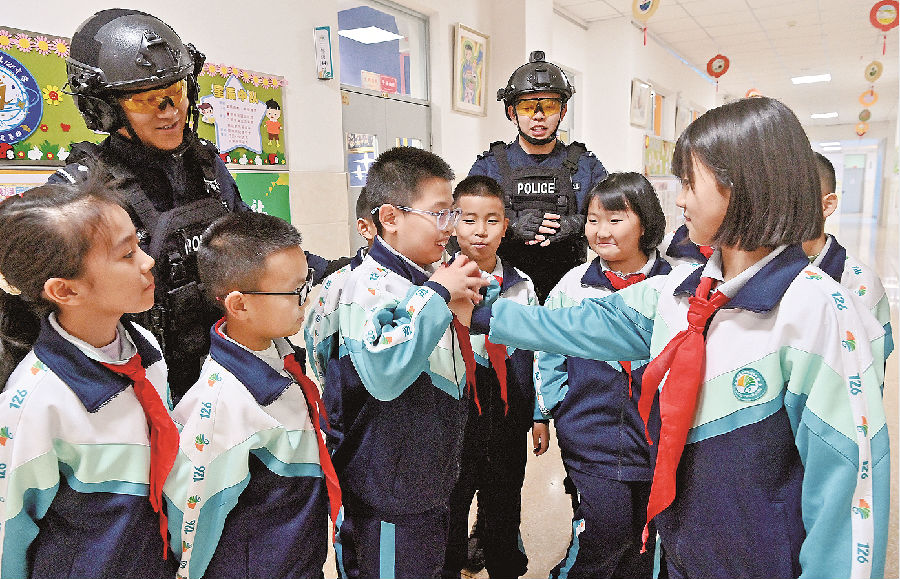12月8日,民警教学生遇到紧急情况如何安全逃脱。