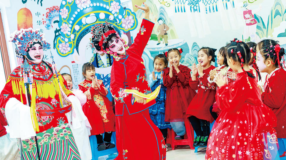A+ | a12月29日,在乌鲁木齐经济技术开发区(头屯河区)北站西路街道河南庄村文化活动室,豫剧老师为孩子们表演豫剧。当日,该村举行“豫剧迎新年 非遗伴成长”活动,孩子们在中华传统文化浸润中喜迎新年。 孙振嵩 摄