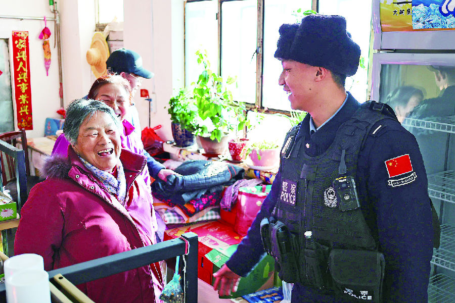 1月20日,新疆出入境边防检查总站阿勒泰边境管理支队托普铁热克边境派出所组织民警到群众家中、沿街商铺,以拉家常的方式征集群众及商户诉求,解答法律问题,讲解防范电信网络诈骗知识和消防安全知识。 石晓坤 摄