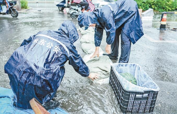 7月2日,乌鲁木齐市突降暴雨。当日20时,乌市米东区小地磅路口一处下水管道破裂,污水顶开井盖涌上路面,流向黄渠中路,严重影响环境卫生和群众出行。米东区公安分局古牧地东路派出所民警紧急搬运沙袋等重物搭建防水带,阻断污水漫延,并将污水引流至排污井。 吴成渝 摄