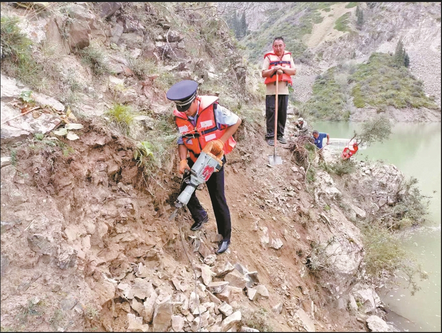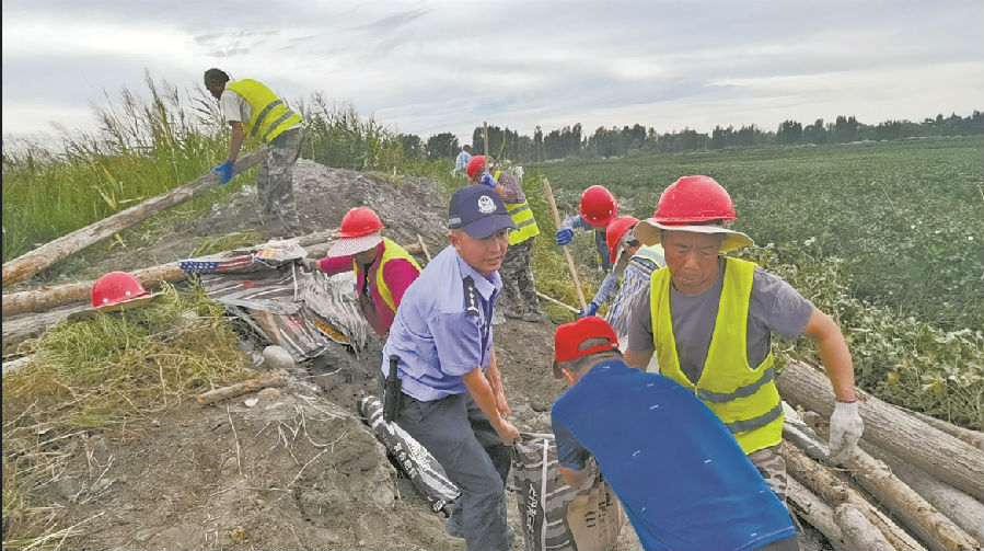 A+ | a8月19日,乌苏市古尔图镇突发强降雨,河水上涨漫过河道冲向周边农田。该市公安局交警大队民警联合古尔图派出所民警迅速抵达现场,堆砌沙袋、开渠分流,目前险情已得到控制,无农田受灾。