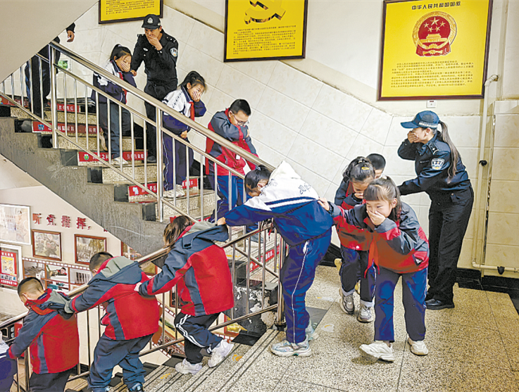 当天,民辅警向学校师生普及消防安全知识,传授火灾逃生技巧并开展消防演练,师生沿预设路线有序撤离,仅用3分钟全部撤出教学楼。