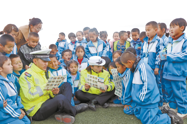 11月4日,昭苏县公安局交警大队民警走进昭苏县第五中学小学部开展交通安全宣传活动。
