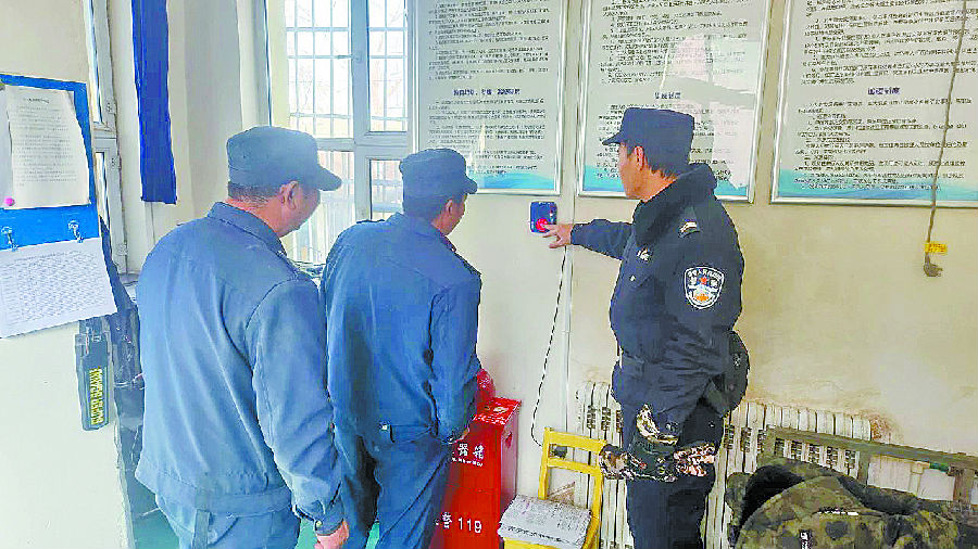 2月17日,第二师乌鲁克垦区公安局恰拉派出所辅警在辖区学校排查安全隐患。 受访单位供图