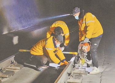 “火车已到达鱼儿沟站,请抓紧时间离开隧道!”惠志灏的对讲机里传出驻站防护员的声音。此时,质量回检工作也接近尾声,张泽清点人数,收拾好手里的工具,坐上轨道车往隧道外驶去。