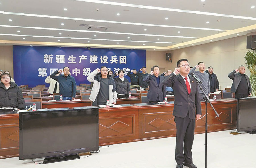 2月19日,霍城垦区人民法院组织人民陪审员宣誓。 吕乐 摄