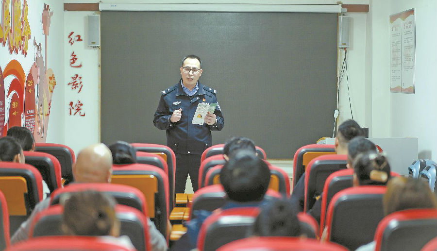 4月17日,乌鲁木齐市公安局高新区(新市区)分局天津路派出所在八家户街道鸿阳社区举办防范投资诈骗专题宣讲会。民警通过剖析辖区真实案例,向商户及居民揭示连环诈骗作案手法,现场教授识破骗局技巧。
