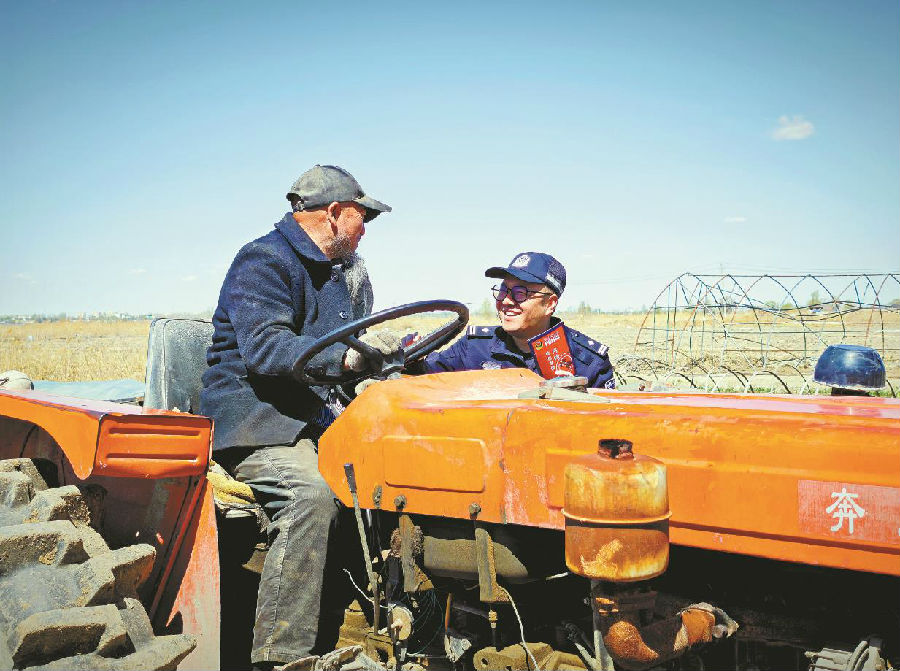 春耕时节,藏蓝身影活跃在乌鲁木齐市米东区三道坝镇的田间地头。4月22日,乌鲁木齐市公安局米东区分局三道坝派出所开展“法护春耕”专项行动,以普法宣传、便民服务和隐患排查为春耕生产筑牢法治屏障。