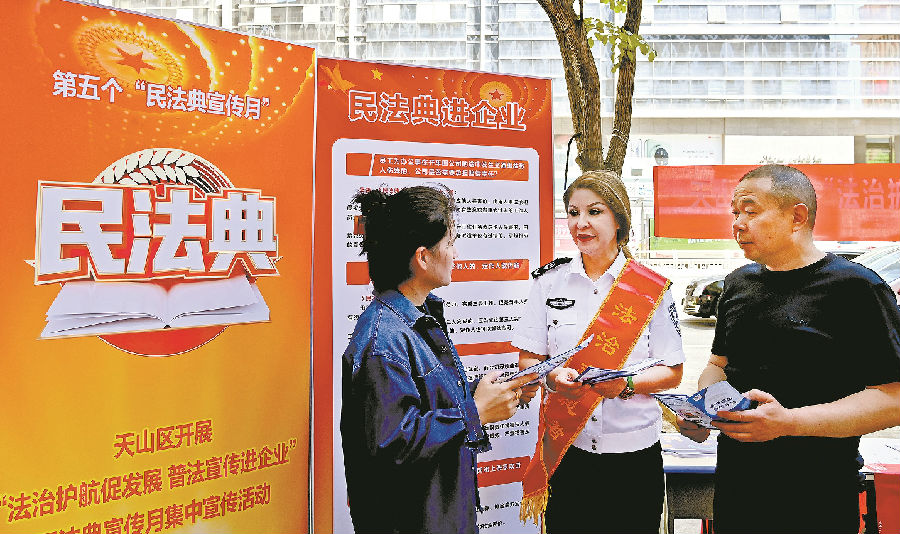 5月13日,乌鲁木齐市天山区司法局联合乌市公安局天山区分局、乌市天山区互联网信息办公室等单位,在辖区开展普法宣传活动。