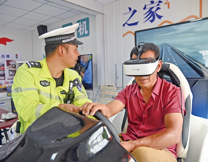 图为一名货车司机体验超速驾驶的危害。 王晓宇 摄
