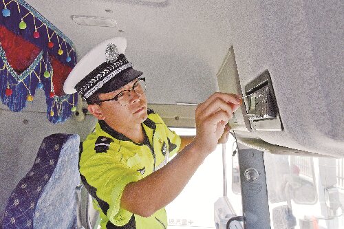 7月22日,霍尔果斯市公安局交通管理大队民警深入辖区货运企业开展安全检查。民警详细查看企业车辆状况、人员信息记录,了解企业内部安全制度落实情况,并作出安全提示。图为民警查看车况。