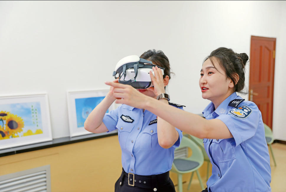 民警在心理健康管理中心体验VR设备。 柴怡彤 摄