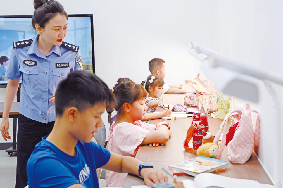民警在警宝托管中心辅导孩子学习。 柴怡彤 摄