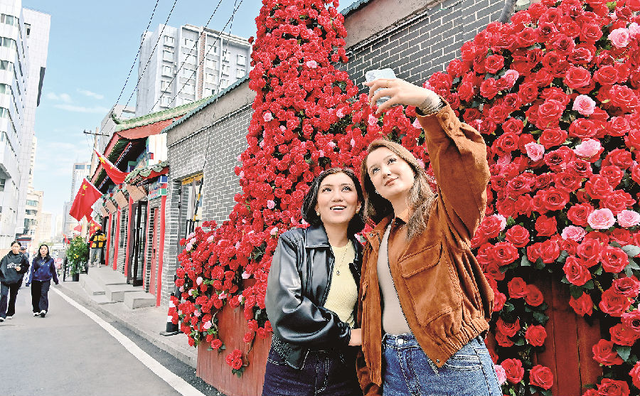 9月15日,乌鲁木齐市民在乌市天山区永和正巷打卡点拍照留念。