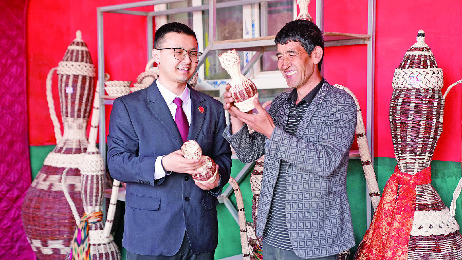 4月,伽师县人民检察院公益诉讼检察官了解非物质文化遗产传统枝条编织技艺传承情况。 阿卜莱提·热西提 摄