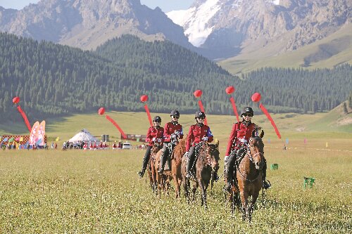 沙湾市鹿角湾景区女子骑警队高效服务游客 解纷救援马蹄疾