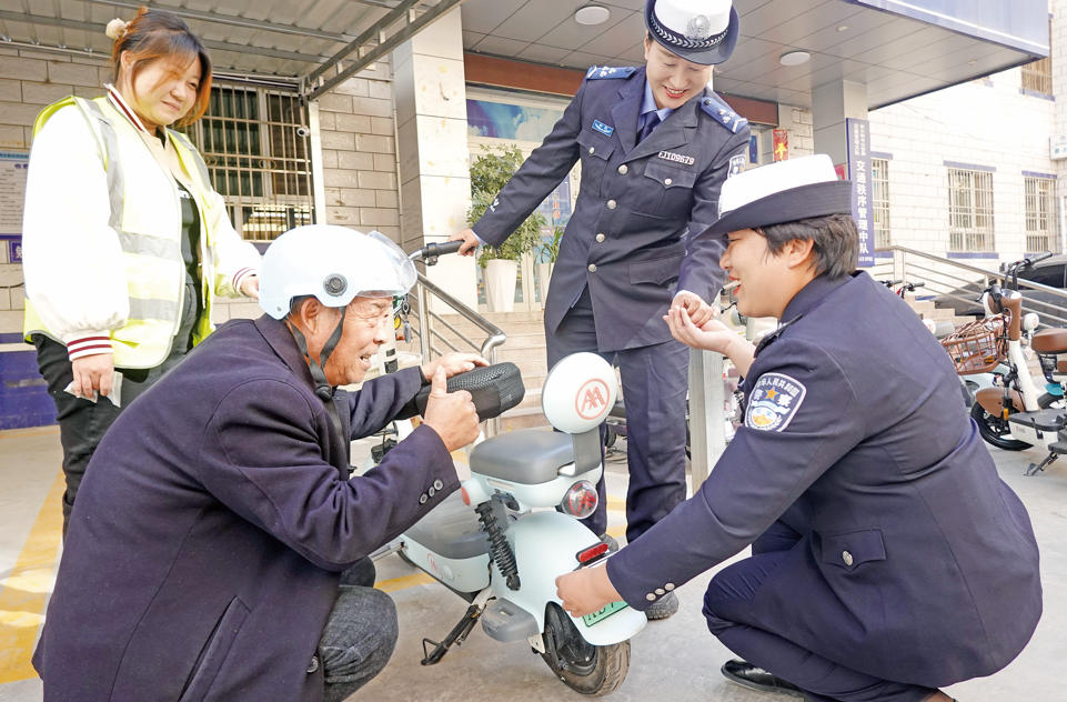 10月10日下午,库尔勒市居民何小平购买电动自行车后,来到团结路服务站办理上牌业务,在窗口工作人员高效办理下,不到10分钟,何小平的电动自行车就已挂上了新牌照。