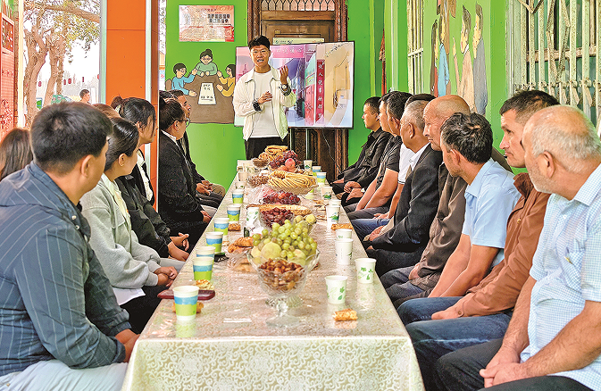 9月23日,在喀什博依村党员中心户肉孜·玉素普家大院,第四村民小组一月一次的“四说”活动开始了。