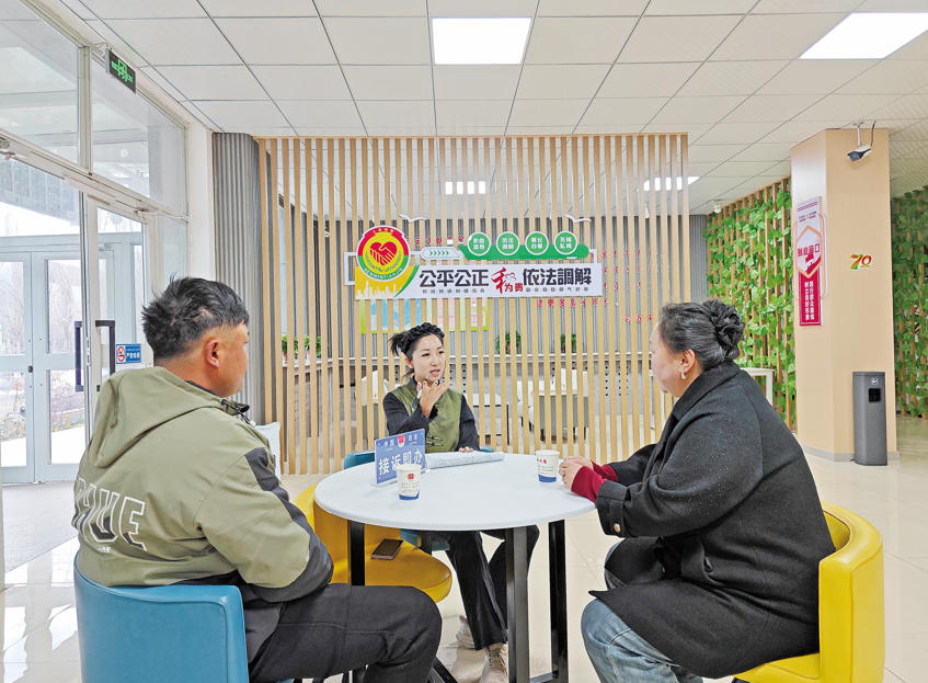 11月5日,何美霖(中)为辖区群众提供法律咨询。 阿依胡马尔·艾尔肯 摄
