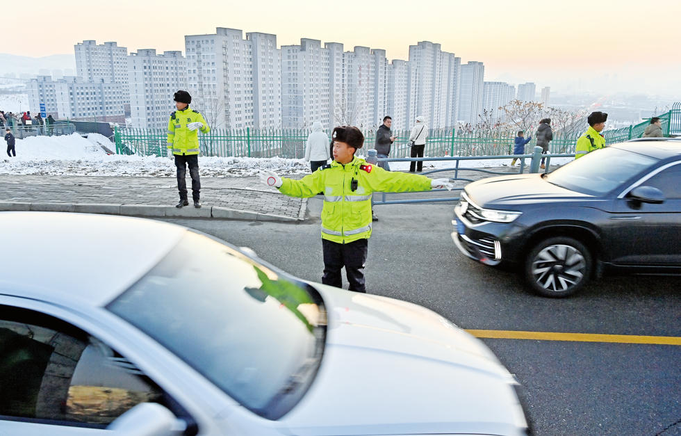 A+ | a技术开发区(头屯河区)“日落大道”迎来一天中最美的时刻。夕阳西沉,金红交织的晚霞铺满天际,吸引众多市民游客驻足停留。乌市公安局交管支队经济技术开发区(头屯河区)大队高铁片区中队民警穿梭在车流中,有条不紊地指挥交通、疏导车辆,守护着美景背后的道路安全。