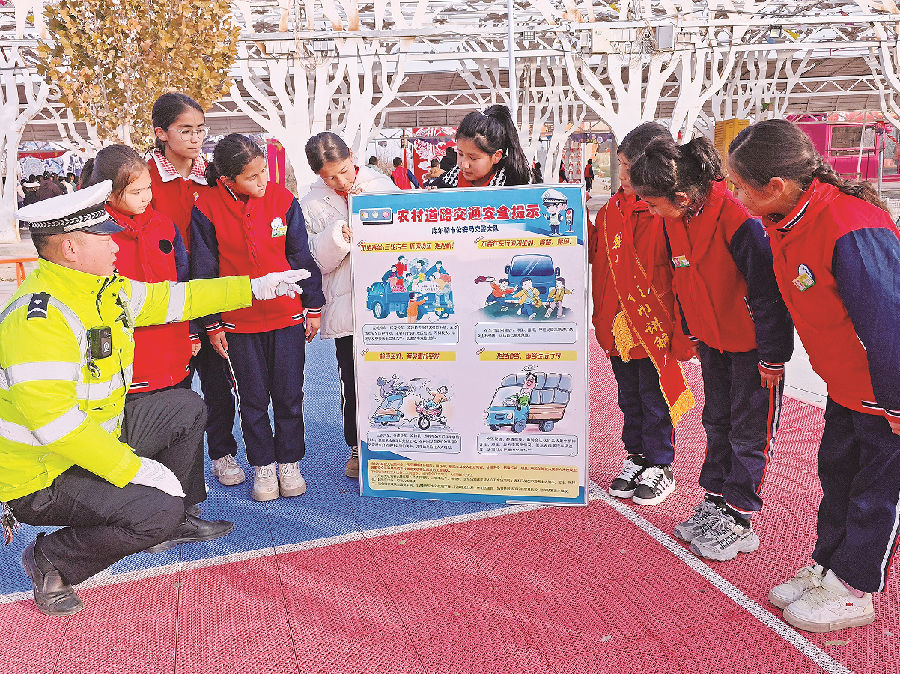 11月17日,库尔勒市公安局交管大队民警辅警携带精美礼品走进阿瓦提乡香梨小镇田野童行研学营地,通过有奖问答的方式向阿瓦提乡中心学校学生宣讲交通安全法律法规。连日来,库尔勒市公安局交管大队持续开展“文明交通、礼行天下”交通安全宣传活动,收获群众好评。